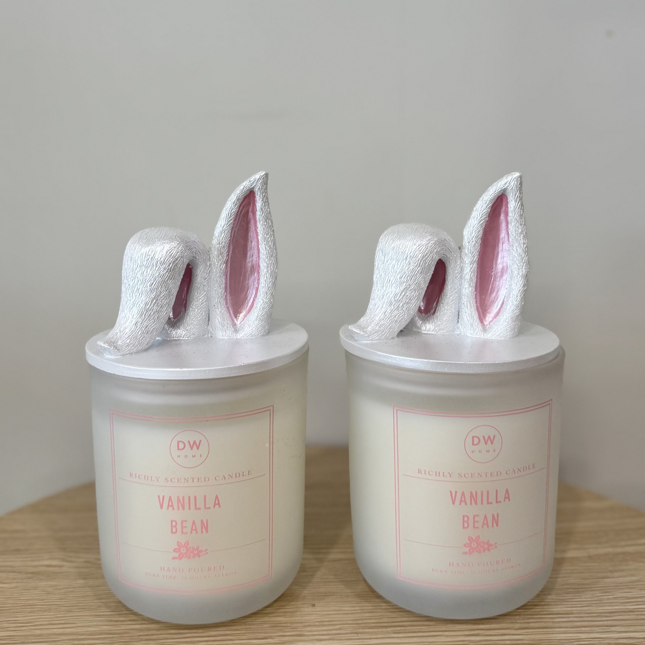 Bunny candle jars a perfect little add on to a gorgeous bunch of flowers. These candles are 325g with an 70 hour burn time. The franrance is a vanilla bean