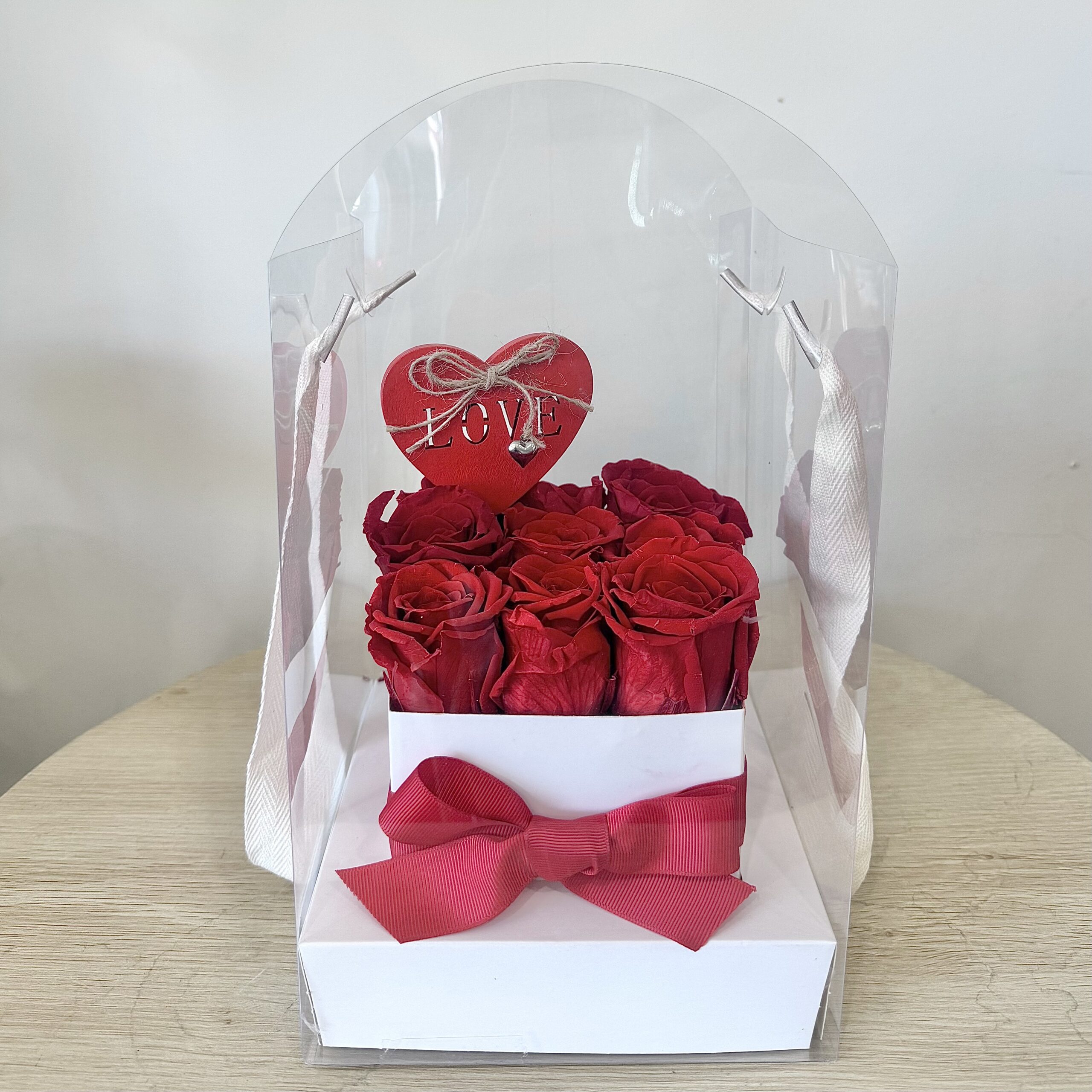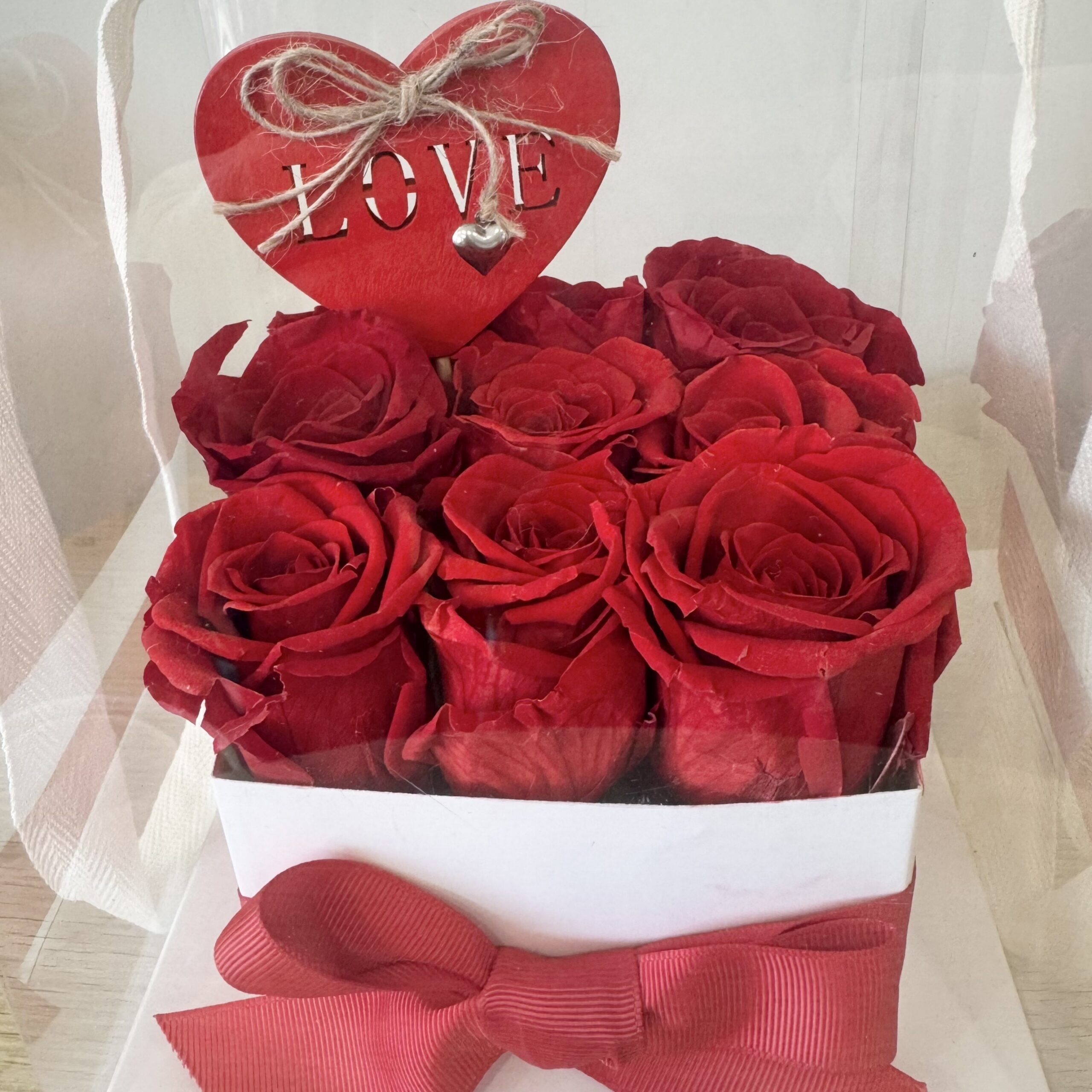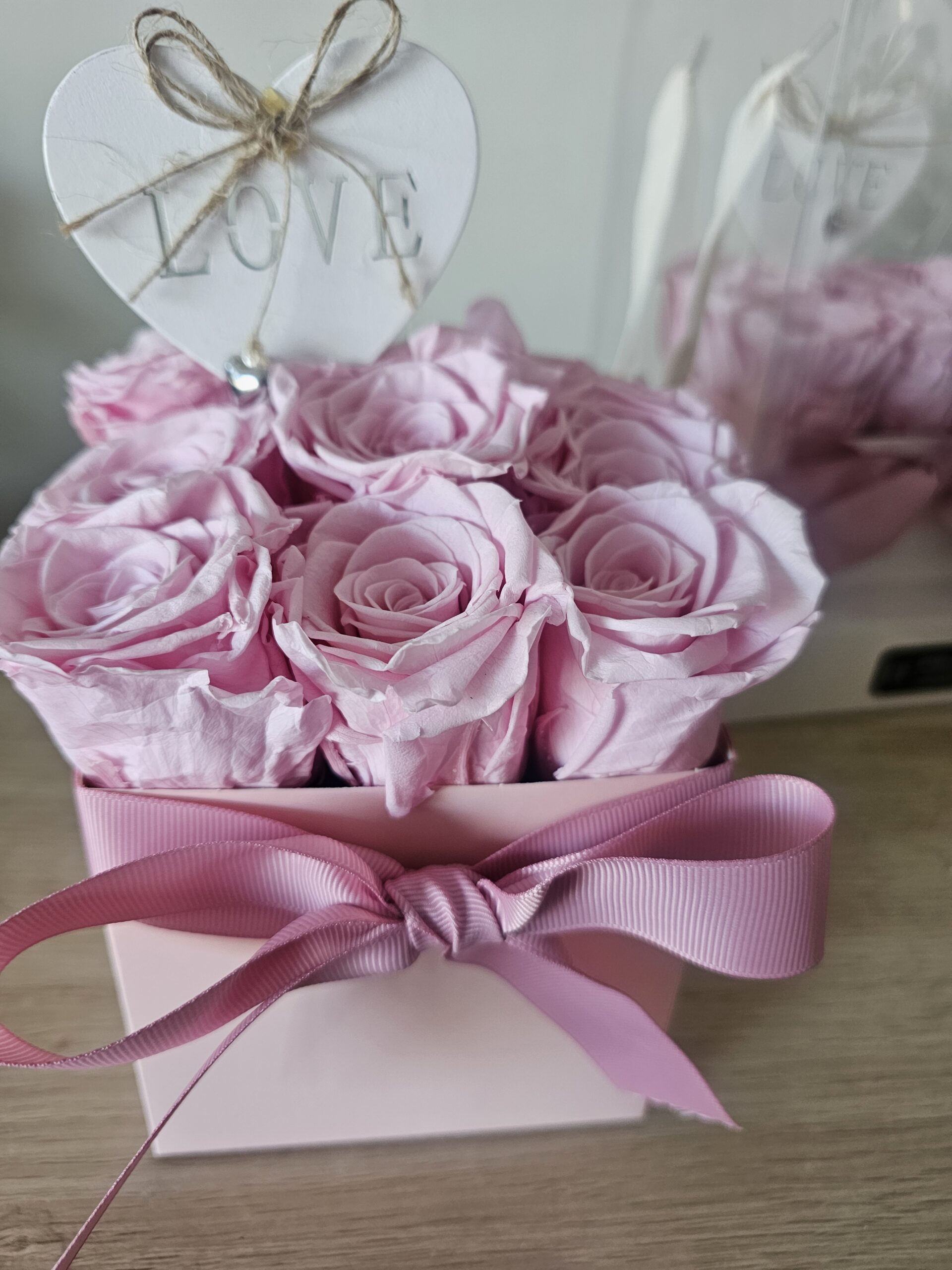 The Penelope preserved everlasting eternal roses, Say i love you forever!! Beautiful 9 pink or red preserved roses presented in beautifully presented carry box. These require no water and maintenance and will continue to look fresh and gorgeous.